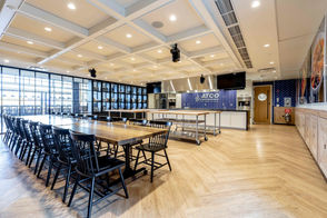 Working with the ATCO team on the public spaces had us bringing these areas to a level of comfort and that felt immediately like home. The inviting spirit of the common areas bring the community together to enjoy delicious food from the Blue Flame Kitchen , as well as serving the ATCO community and special events.